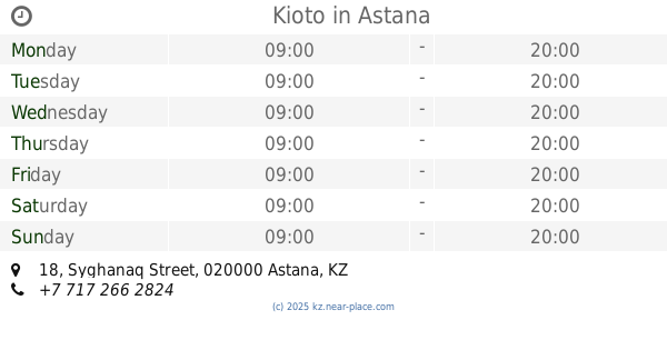16, Dostyk Street, 010000, Astana, KZ Kazakhstan